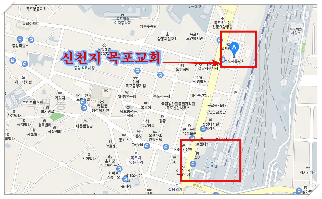 목포 시온교회는 목포역 바로 곁에 있습니다.