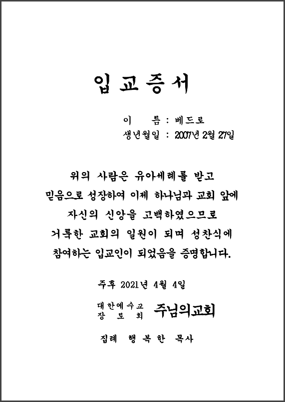입교세례증서 한글파일hwp