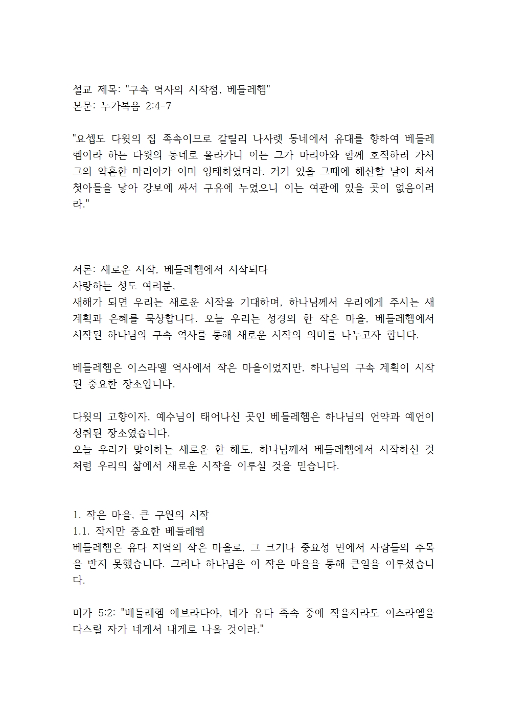 설교 제목: "구속 역사의 시작점, 베들레헴"
