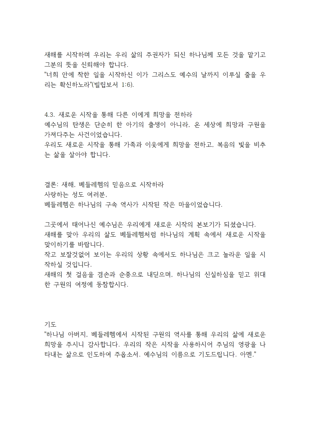 - 오늘 우리가 맞이하는 새로운 한 해도, 하나님께서 베들레헴에서 시작하신 것처럼 우리의 삶에서 새로운 시작을 이루실 것을 믿습니다.