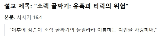 설교 제목: "소렉 골짜기: 유혹과 타락의 위험"