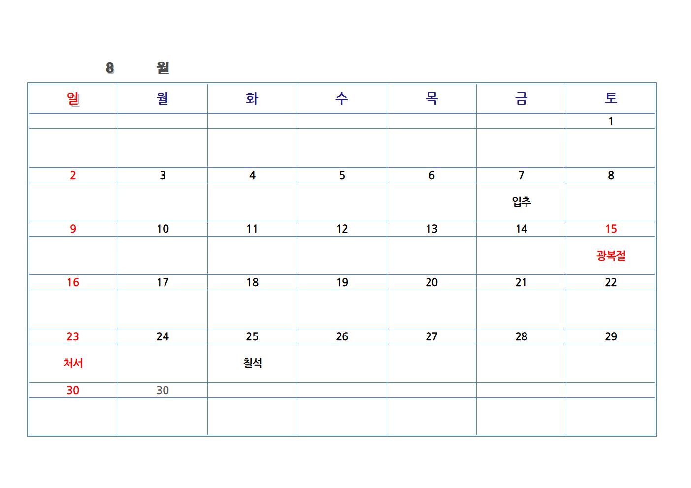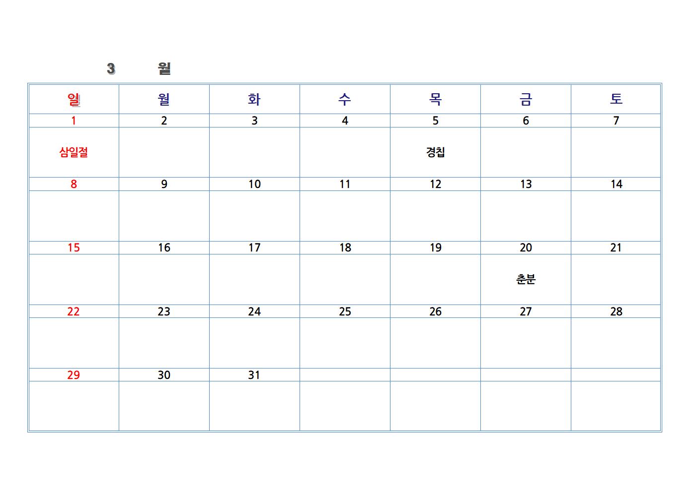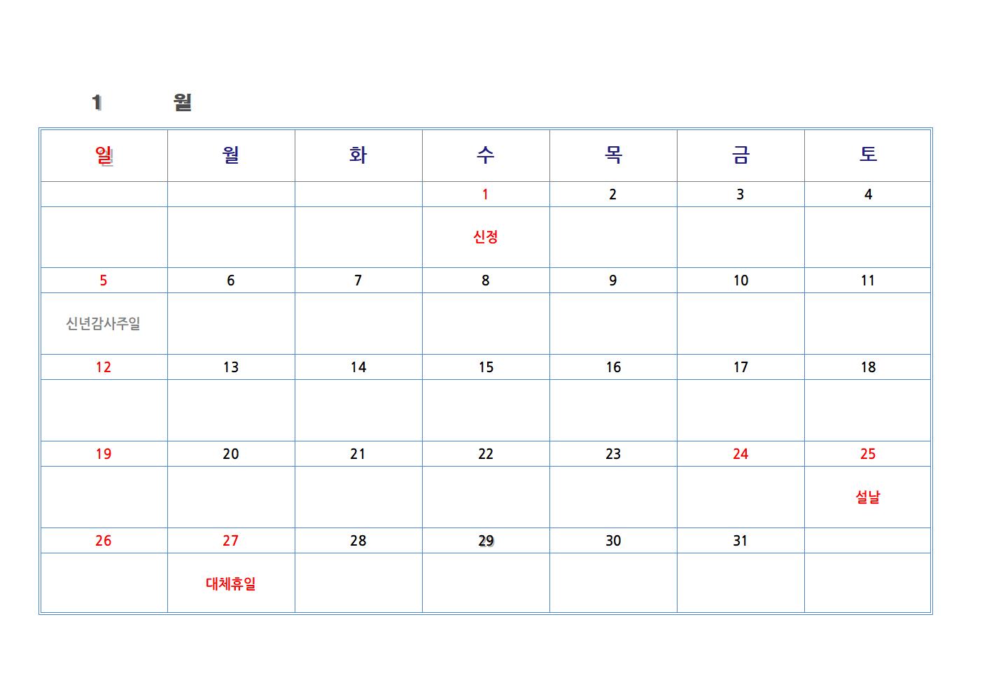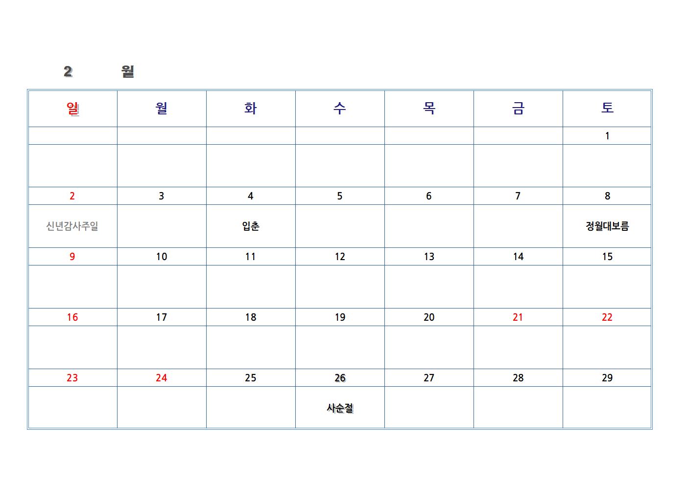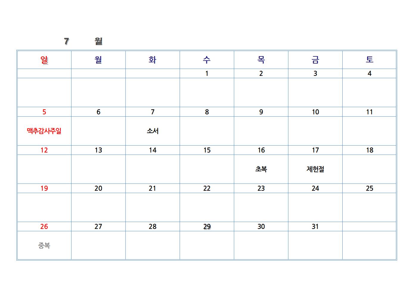 한글 파일로 만든 교회 달력입니다. 가장 기본적인 절기와 공휴일을 넣었습니다. 한글 파일을 가장 하단에 첨부했습니다. 다운로드하여 수정해 사용하시면 됩니다.